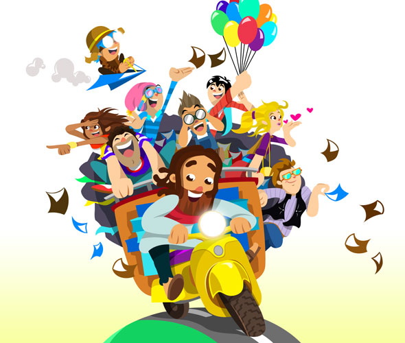 As art director for IAM ltda, I was in charge of creating the concept art and animation for a series of e-cards. I started by designing all characters, backgrounds and animation for the first round of e-cards and then a team of artist joined me and together we created a massive universe of fun characters and cool situations.
