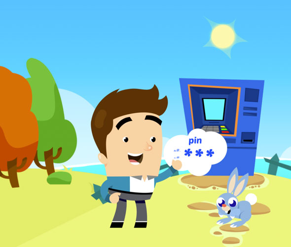 Explainer animated videos about internet security. I was in charge of the Art direction and designed all characters, scenarios and mood and the animations as well.